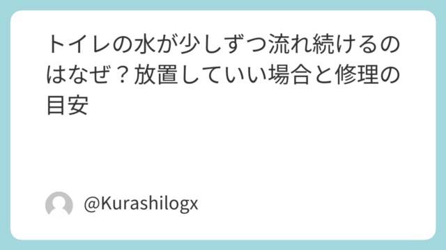 トイレの水が流れ続ける原因と、自分で確認できるポイント、修理や業者を呼ぶ目安を分かりやすく解説します。