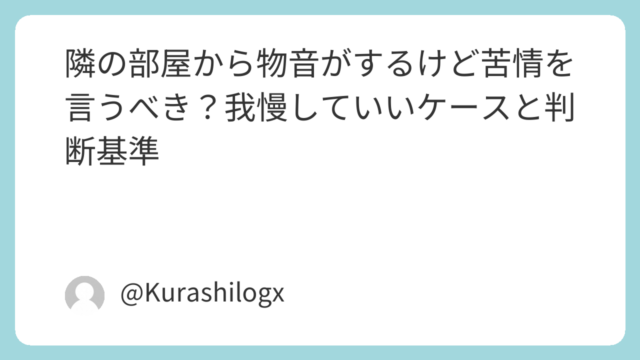 実際に集合住宅でよくある音の例をもとに、苦情を言っても問題ないケース・言わない方がいいケースを整理して解説します。