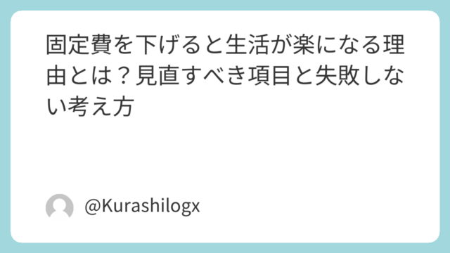 この記事では、固定費を下げるとなぜ生活が楽になるのか、見直すべき代表的な固定費と、失敗しない考え方を分かりやすく解説します。