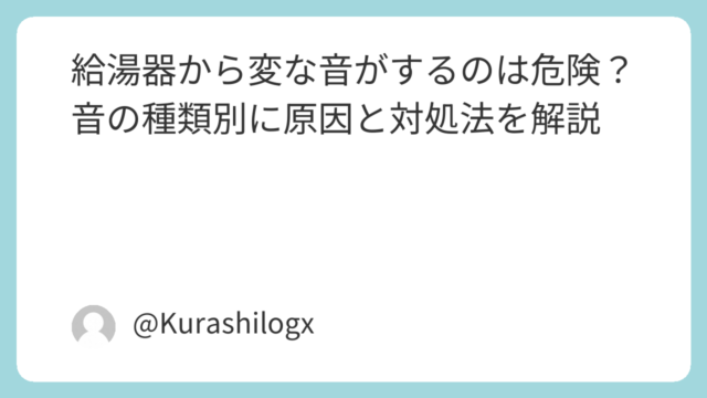 この記事では、給湯器から出る音を種類別に分けて、危険度・原因・対処法を分かりやすく解説します