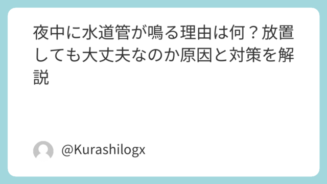 この記事では、夜中に水道管が鳴る原因を音の種類別に解説し、今すぐできる対策も紹介します。